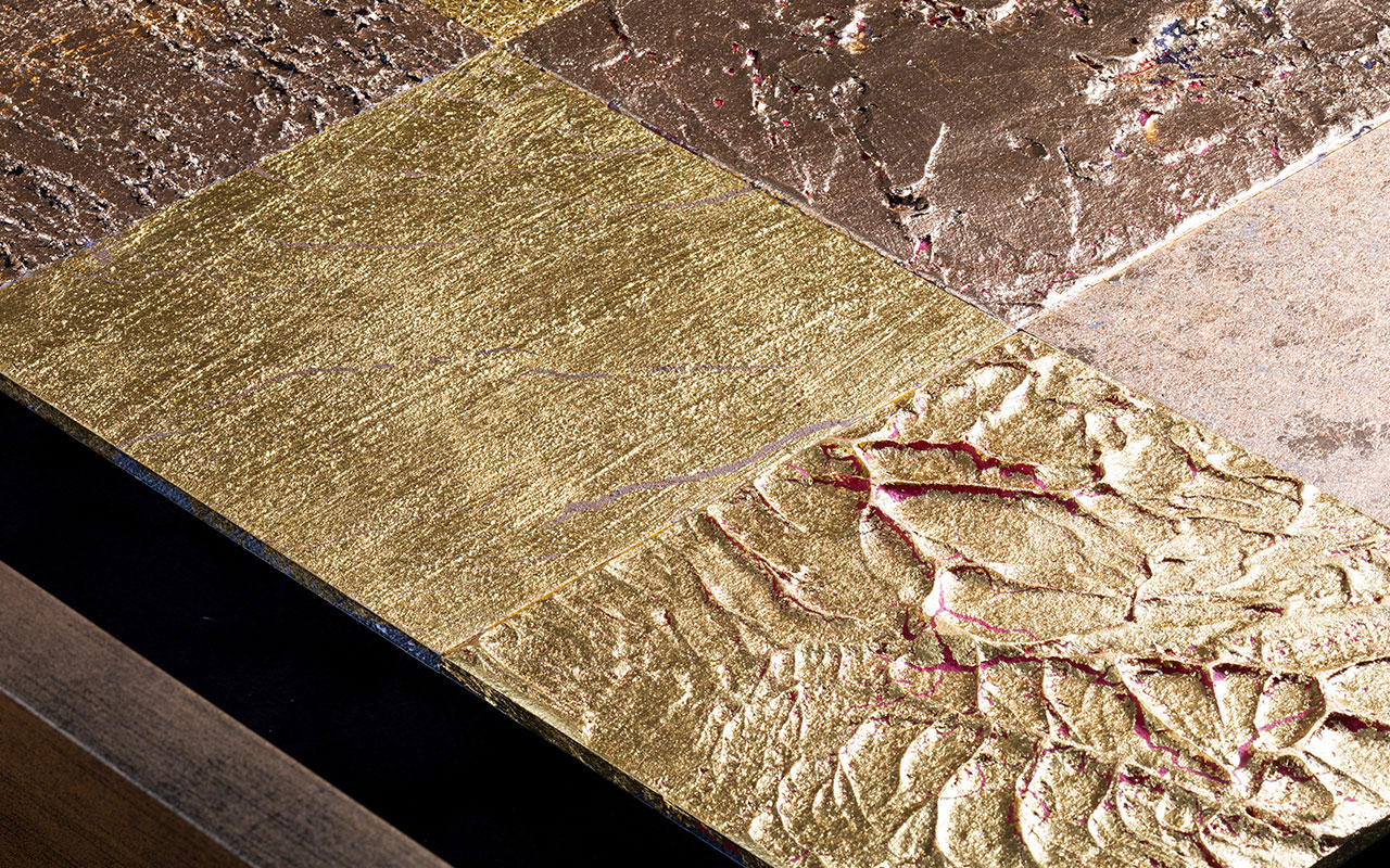 「LUXE」は、箔一の職人たちが金沢箔そのものの美しさを追求したアート作品として、2021年に発売されました。職人たちが最高の技術をつぎ込み、純粋に金沢箔の美しさとその表現の可能性を探ったアートです。コロナ禍において、自宅で過ごす空間を彩る新しいアート作品として人気を博しました。翌年以降、住宅から商業空間まで幅広いシーンで採用され、根強い人気を誇っています。